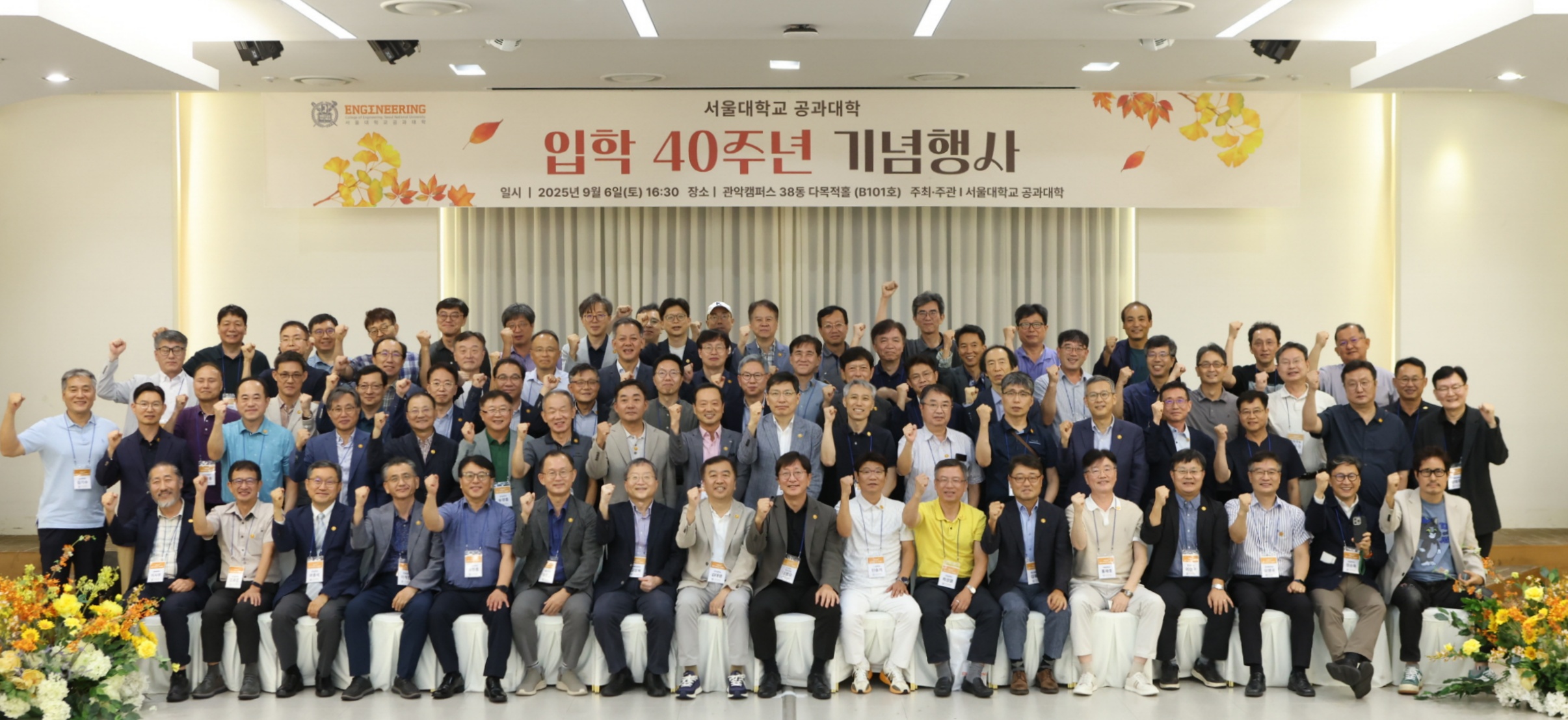 "40년 만의 재회, 변함없는 우정과 자부심" 서울대학교 공과대학은 지난 9월 6일(토), 관악캠퍼스 38동 다목적홀에서 ‘서울공대 85학번 입학 40주년 기념행사’를 성황리에 개최했다. 이번 행사는 1985년도에 입학 한 동문들이 한자리에 모여 40년의 발자취를 되돌아보고 함께한 시간을 추억...